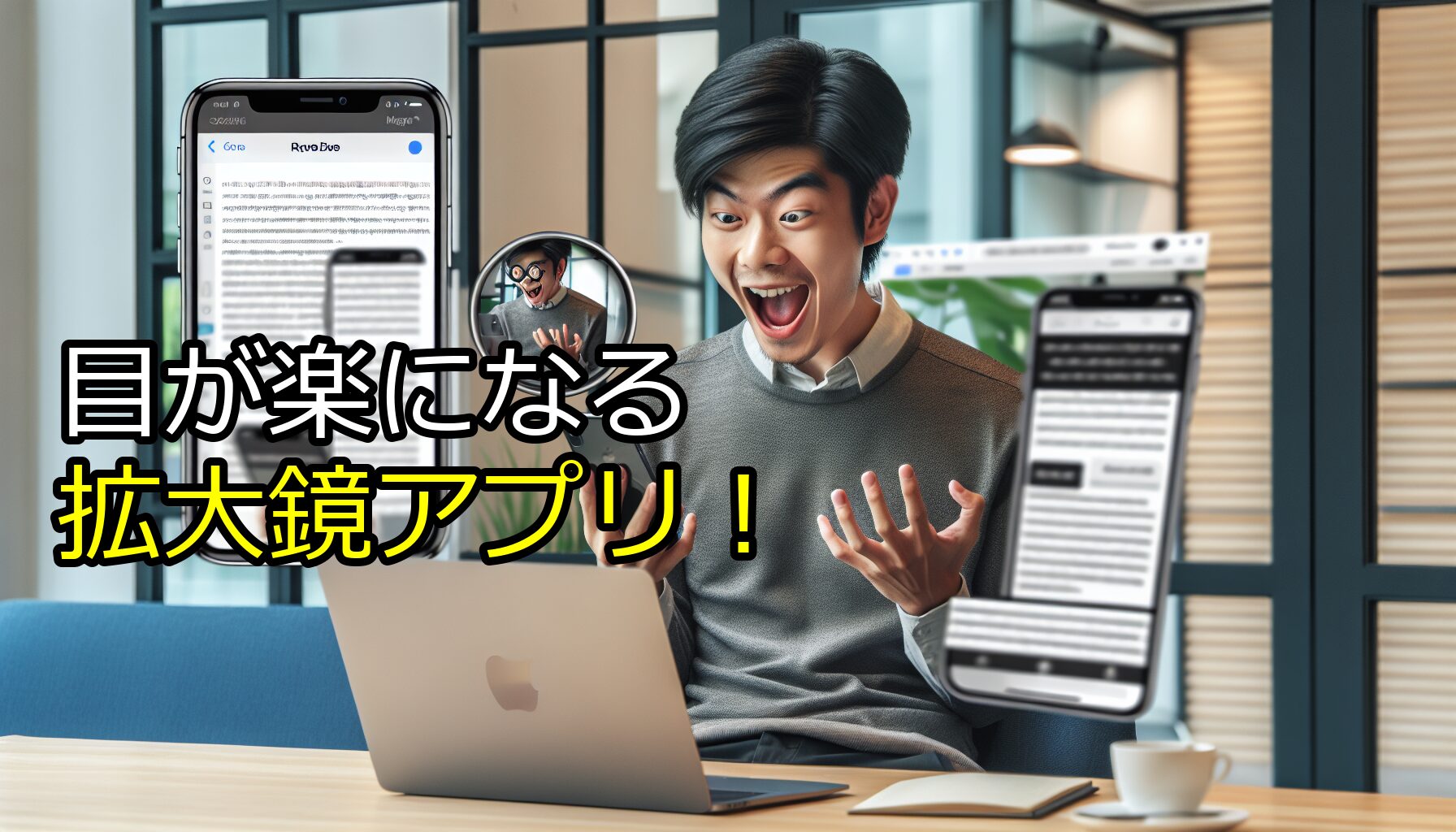 新たにリリースされた「拡大鏡」アプリは、MacとiPhoneを用いて視覚補助を実現する画期的なツールです。このアプリは、文字の拡大や読み上げ機能を提供し、特に事務職や営業支援の現場で大きなインパクトをもたらします。日常的に書類を扱う職場では、視力に不安がある社員や、細かい文字を長時間見続けることで疲労を感じる人々にとって、このアプリは非常に役立ちます。実際、書類をデジタル化し、すぐに拡大して確認できることで、作業効率が飛躍的に向上することが期待されます。